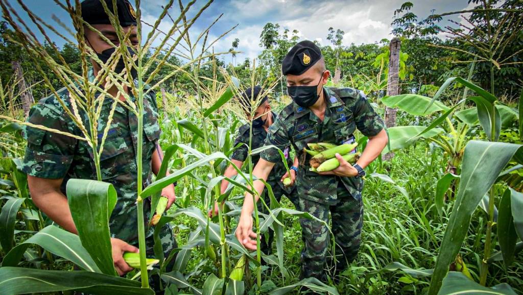 กลุ่มเกษตรกรชาวสวน ไร่ข้าวโพด จ.ขอนแก่น กำลังประสบปัญหาข้าวโพดราคาตกต่ำเป็นผลกระทบจากสถานการณ์การแพร่ระบาดของโรคโควิด-19 ผู้คนไม่ค่อยเดินทางออกจากบ้าน ไม่มีพ่อค้ามารับซื้อผลผลิต ทำให้ยอดขายลดลงอย่างมาก พิษโควิด-19 ระบาดรอบนี้หนักกว่าครั้งก่อนมาก ทำให้ชาวสวนต้องลดราคาลงเหลือกิโลกรัมละ 5 – 7 บาท จากปีที่ผ่านมาเคยขายได้กิโลกรัมละ 10 -15 บาท พันเอก ณรงค์ วิชญาณวรวุฒิ ผู้บังคับการกรมทหารราบที่ 8 ( ผบ.ร.8 ) มีความห่วงใยต่อเกษตรกรชาวสวนข้าวโพดที่กำลังประสบปัญหาจากสถานการณ์การแพร่ระบาดโรคโควิด-19 จึงได้จัดกำลังพลลงพื้นที่เข้าช่วยเหลือเกษตรกรชาวสวน ที่ได้รับผลกระทบฯ ซึ่งพ่อค้าแม่ค้าไม่สามารถมารับซื้อที่สวนโดยตรงกับเกษตรกรถึงสวน หากปล่อยไว้นานจะทำให้ผลผลิตเสียหายและขาดทุน เป็นการบรรเทาความเดือดร้อนให้กับเกษตรกรตามโครงการทบ.”น้องทหารอิ่มท้อง พี่น้องเกษตรกรอิ่มใจ”เข้าให้ความช่วยเหลือตามศักยภาพของหน่วย ด้วยการรับซื้อพืชผลทางการเกษตร รวมถึงผลไม้ที่ออกตามฤดูกาลในแต่ละพื้นที่ เพื่อให้เกษตรกรได้มีรายได้จุนเจือครอบครัว และการบรรเทาความเดือนร้อนในเบื้องต้น