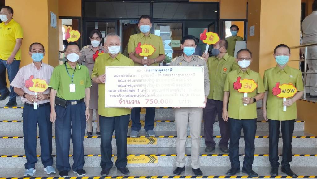 เมื่อเวลา 13.30 น. วันที่ 19 กรกฎาคม 2564 ณ ศาลากลางจังหวัดอุดรธานี นายสยาม ศิริมงคล ผู้ว่าราชการจังหวัดอุดรธานีรับมอบเงินบริจาคสมทบทุนจัดซื้อเครื่องช่วยหายใจ "ออกซิเจนไฮโฟลว์" ให้การสนับสนุนโรงพยาบาลอุดรธานี ดูแลพี่น้องประชาชนที่ติดเชื้อโควิด 19 โดยชุดแรกผู้ว่าราชการจังหวัดอุดรธานี รับมอบผลิตภัณฑ์น้ำยาล้างมืออเนกประสงค์ จากนายสรรเพชญ สงคราม ผู้สื่อข่าว นสพ.คู่แผ่นดิน เป็นตัวแทนบริษัทไดมอนกิฟอินเตอร์เนชั่นแนล จำกัด ซึ่งประกอบด้วย น้ำยาล้างมืออเนกประสงค์ขนาด 500 มิลลิลิตร 300 ขวด และชุดยาสีฟันรวม 3 รายการ 240 ชุด จากนั้นรับมอบเงินบริจาคจากสมาคมฮากกาอุดรธานี ชมรมสตรี และชมรมยุวฮากกาอุดรธานี คณะกรรมการศาลเจ้าปู่ย่า อุดรธานีสมัยที่ 55 ,คณะกรรมการศาลเจ้าปู่ย่า สมัยที่ 60 , ครอบครัวต้อยติ่ง , ครอบครัวจันทสุรียวิช ซึ่งมีนายกองเอกสุวิทย์ พิพัฒน์วิไลกุล นายกสมาคมฮากกาอุดรธานี และคณะร่วมส่งมอบ จำนวน 750,000 บาท พร้อมกันนี้ นายศุภชัย และนางพัชรินทร์ จันทสุรียวิช และครอบครัว ร่วมบริจาคเพิ่ม 250,000 บาท