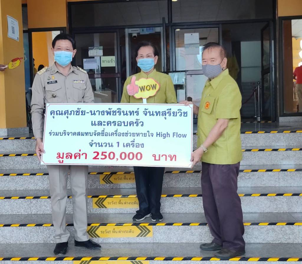 หน่วยงานราชการ และภาคเอกชน ร่วมบริจาคเงินและสิ่งของ สมทบทุนจัดซื้อเครื่องช่วยหายใจ "ออกซิเจนไฮโฟลว์" พร้อมผลิตภัณฑ์น้ำยาล้างมืออเนกประสงค์ ชุดยาสีฟัน เพื่อให้จังหวัดและบุคลากรการแพทย์นำไปใช้ดูแลพี่น้องประชาชนในพื้นที่