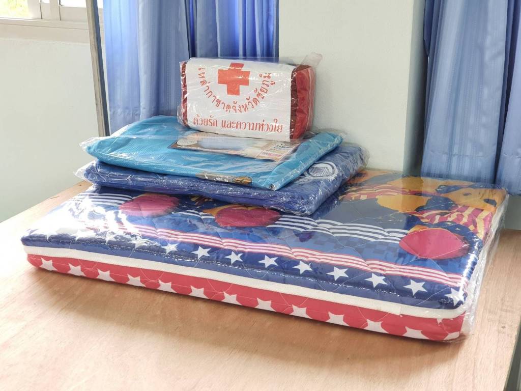 ทั้งนี้เหล่ากาชาดจังหวัดชัยภูมิ ได้มอบหมอนขิดให้กับโรงพยาบาลสนามฯ สำหรับผู้ป่วยฯ เพิ่มเติมอีกรวมจำนวน 350 ใบ เพื่อนำไปใช้ในโรงพยาบาลสนามอีกด้วย