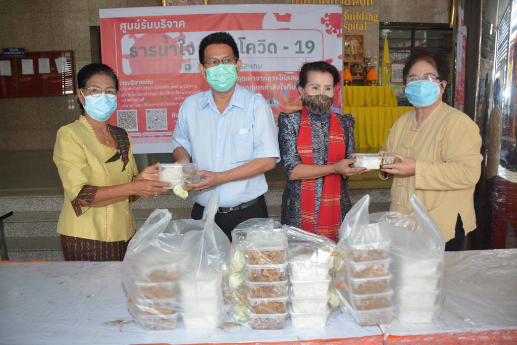 เมื่อวันที่ 22 ก.ค. 64 ผู้สื่อข่าวรายงานว่า ที่บริเวณด้านหน้าตึกผู้ป่วยนอก รพ.ศรีสะเกษ อ.เมือง จ.ศรีสะเกษ นางจันทร์เพ็ญ ปริปุณณะชัย เจ้าของโรงแรมคุ้มล้านนา พร้อมด้วย นางมยุรี ชูรัตน์ ข้าราชการบำนาญ และ น.ส.ปวริศา มหาขันธ์ ได้นำเอาข้าวกล่อง เป็นข้าวกระเพรา ข้าวผัดพริกขิง ข้าวหมูทอด จำนวน 50 กล่อง ไปมอบให้กับ นพ.ฐิสริน ตรรกเมธา รอง ผอ.รพ.สนามวีสมหมาย ประธานศูนย์รับบริจาค รพ.ศรีสะเกษ และ น.ส.จงดี ภู่บุปผา พยาบาลวิชาชีพชำนาญการ เพื่อต้องการให้นำเอาข้าวกล่องทั้งหมดไปให้การสนับสนุนแก่คณะแพทย์ พยาบาล รพ.ศรีสะเกษ ที่กำลังให้การดูแลรักษาพยาบาลผู้ป่วยติดเชื้อโควิด - 19 กันอย่างเต็มที่