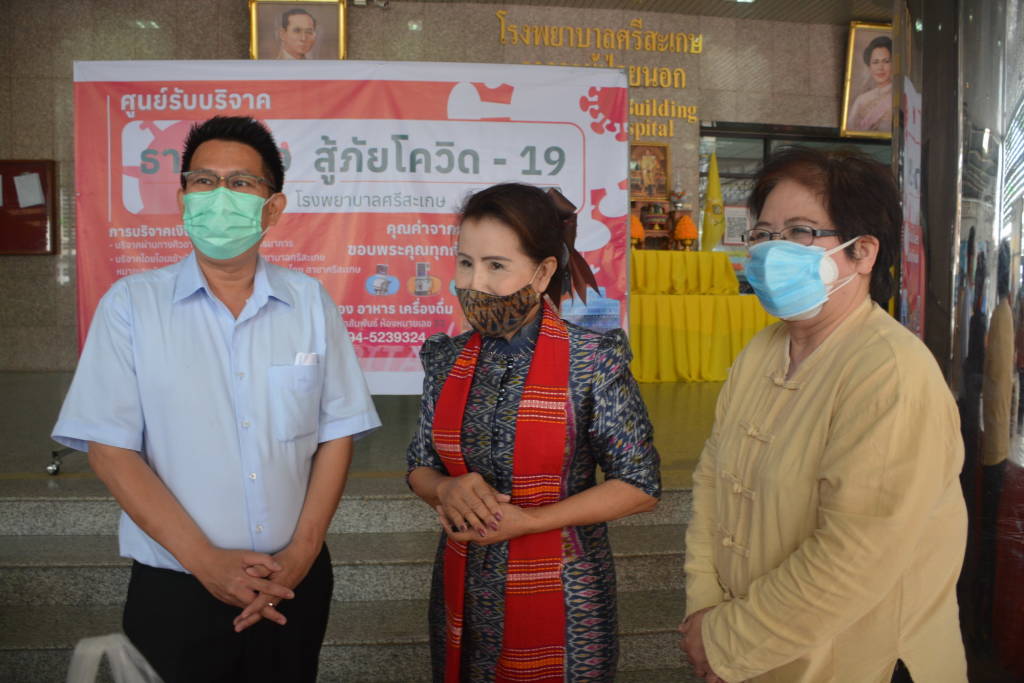นางจันทร์เพ็ญ ปริปุณณะชัย เจ้าของโรงแรมคุ้มล้านนา กล่าวว่า ตนประกอบธุรกิจและเห็นว่า แพทย์และพยาบาล รพ.ศรีสะเกษ ได้ทำงานอย่างหนักในการที่จะดูแลรักษาพยาบาลผู้ป่วย ดังนั้น พวกตนจึงได้จัดทำข้าวกล่องมามอบให้คณะแพทย์ พยาบาล ทั้งนี้เพื่อขอเป็นกำลังใจส่วนหนึ่งที่จะให้การสนับสนุนการปฏิบัติงานของคณะแพทย์ พยาบาลทุกท่าน และขอให้แพทย์ พยาบาลทุกท่านมีสุขภาพสมบูรณ์แข็งแรง ปลอดภัยจากโรคไวรัสโควิด-19 ทุกท่าน