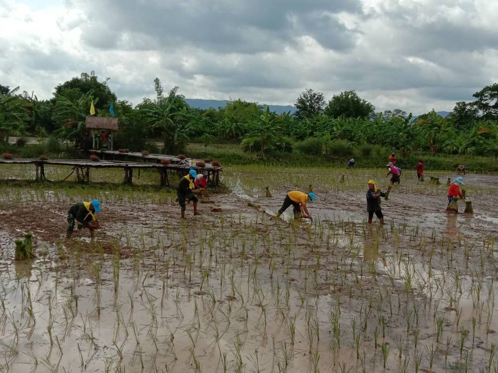 ## ร.13 พัน.3 จัดกำลังพลเข้าร่วมกิจกรรม "ลงแขก ดำนา" ##