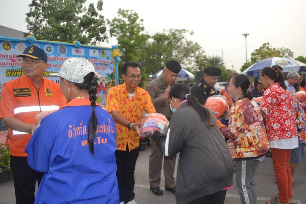 หลังจากพิธีเปิดทางด้านผู้ว่าราชการจังหวัดชัยภูมิและรองผู้ว่าราชการจังหวัดชัยภูมิ ผู้บังคับการตำรวจภูธรจังหวัดชัยภูมิ รวมถึงหัวหน้าส่วน ได้ทำพิธีมอบหมวกกันน็อคให้กับผู้ใช้รถใช้ถนนในเขตเทศบาลเมือง เพื่อเป็นการรณรงค์และบอกต่อถึงความปลอดภัยของการใส่หมวกกันน็อกขณะขับขี่รถจักรยานยนต์ จากนั้นได้มีการปล่อยแถว รณรงค์ ไปตามเขตเทศบาล เพื่อให้ ผู้ใช้รถใช้ถนนได้ตระหนักถึงความปลอดภัยในช่วงเทศกาล
