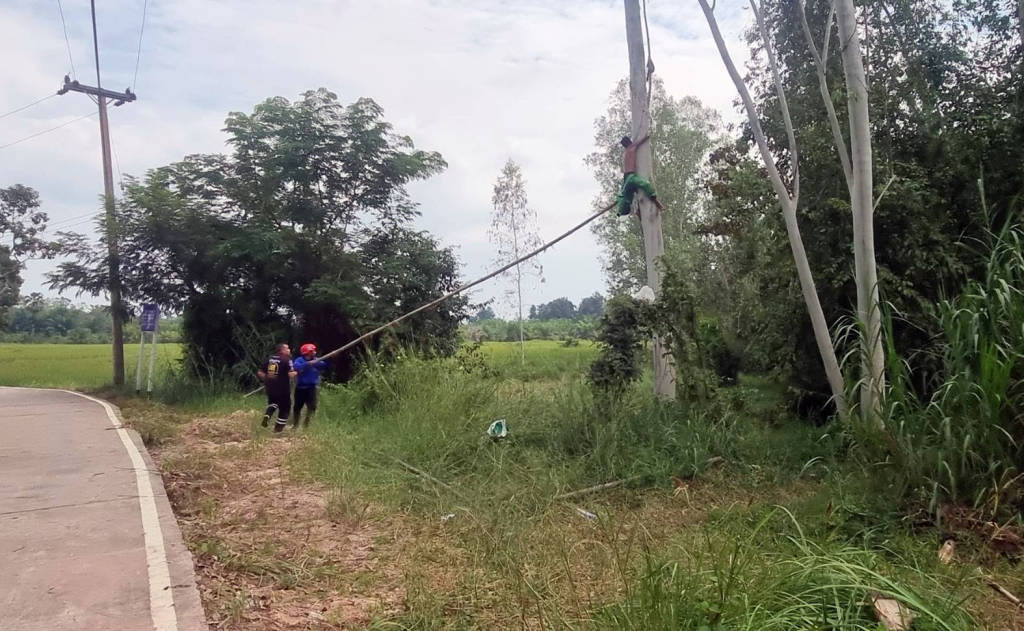บึงกาฬ ระทึก!! ช่วยหนุ่มใหญ่ถูกต่อหัวเสือรุมต่อยติดคากิ่งไม้ปางตาย