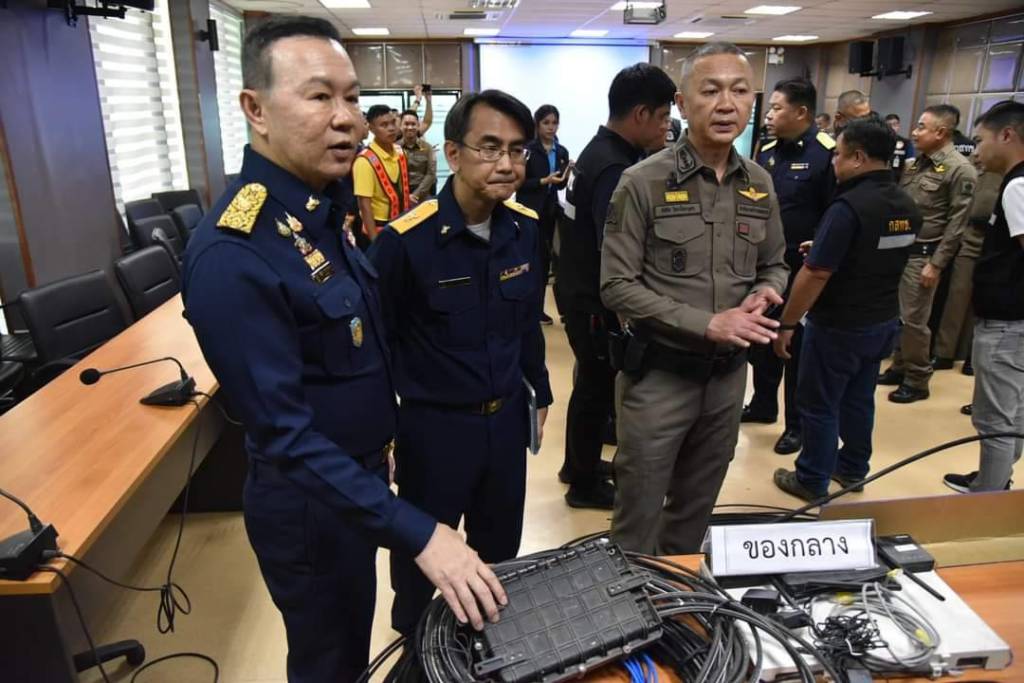 พล.ต.ท.ธัชชัย กล่าวว่า จากนโยบายของรัฐบาล มอบหมายให้ สำนักงานตำรวจแห่งชาติกวดขัน ปราบปรามอย่างเด็ดขาดกับอาชญากรรมออนไลน์ โดยเฉพาะอย่างยิ่งแก๊งคอลเซ็นเตอร์ ซึ่งสร้าง ความเดือนร้อนให้กับประชาชนเป็นอย่างมาก ดังนั้น พล.ต.อ.กิตติ์รัฐ พันธุ์เพ็ชร์ ผบ.ตร. จึงได้มอบหมายให้ตนในฐานะผู้ช่วย ผบ.ตร. และ รอง ผอ.ศปอส.ตร. เป็นผู้ดำเนินการจับกุมในวันนี้ โดยเป็นการทำงานร่วมกับ กสทช. ในการเดินหน้าสกัดกั้นไม่ให้ผู้กระทำผิดเข้าถึงเครื่องมือต่างๆ ได้โดยง่าย ทั้งนี้เจ้าหน้าที่ได้ทำการรื้อสายเคเบิล พร้อมกับเข้าตรวจค้นตู้ซิม ตรวจยึดซิมการ์ดไทยตำนวน 101,068 ซิม รวมทั้ง SIM BOX และอุปกรณ์อื่นๆ จำนวนมาก ขบวนการลักลอบพาดสายที่เราจับกุมได้ในวันนี้ ถือว่าเป็นการกระทำที่ไม่เกรงกลัวต่อกฎหมาย มีความแตกต่างจากการกระทำความผิดในพื้นที่อื่นที่เจ้าหน้าที่เข้าจับกลุ่มเนื่องจาก ที่ผ่านมาเป็นการลักลอบลากสายตามช่องทางธรรมชาติ หรือผ่านแม่น้ำ แต่ครั้งนี้เป็นการลากพาดสะพานข้ามแดนระหว่างประเทศ ศึ่งถือเป็นครั้งแรกที่มีการตรวจพบ หลังจากนี้จะได้สั่งการให้ทุกหน่วยที่มีพื้นที่รับผิดชอบติดแนวชานแดนประสานการทำงานกับ กสทช. ตรวจสอบการกระทำผิดในลักษณะนี้ หากตรวจพบให้ดำเนินการอย่างเฉียบขาดทุกราย พล.ต.ท.ธัชชัย กล่าว ทั้งนี้ เจ้าหน้าที่ชุดจับกุมแจ้งว่าสายสัญญาณอินเตอร์เน็ตที่มีการลักลอบเชื่อมต่อเข้าไปใน สปป.ลาว มีปลายทางอยู่ที่บริเวณใกล้กับสะหวันเวกัส ซึ่งเป็นคาสิโนแห่งหนึ่งในแขวงสะหวันนะเขต
