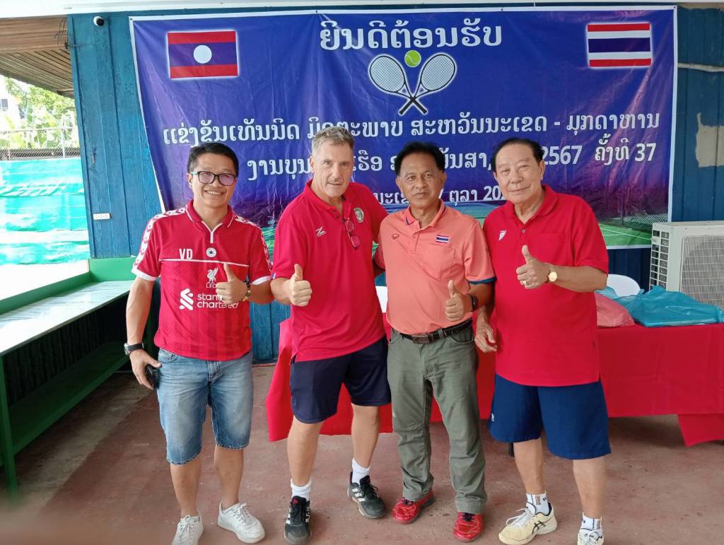 นายรังสิฐ ลือพาณิชย์กุล ประธานชมรมกีฬาเทนนิส จังหวัดมุกดาหาร นำนักกีฬา เทนนิสจังหวัดมุกดาหาร รุ่นทั่วไป และรุ่นอาวุโส จำนวน 40 คน ข้ามไปเล่นกีฬาเทนนิสมิตรภาพเชื่อมความสัมพันธ์ไทย-ลาว ที่เมืองไกสอนพรมวิหาร แขวงสะหวันนะเขต สปป.ลาว โดยได้รับการอนุเคราะห์และอำนวยความสะดวกในการเดินทางจากทางท่านวรญาณ บุญณราช ผู้ว่าราชการจังหวัดมุกดาหาร และหน่วยงานต่างๆ อาทิ ตรวจคนเข้าเมืองมุกดาหาร ศุลกากรมุกดาหาร แขวงการทางมุกดาหาร ในการนี้