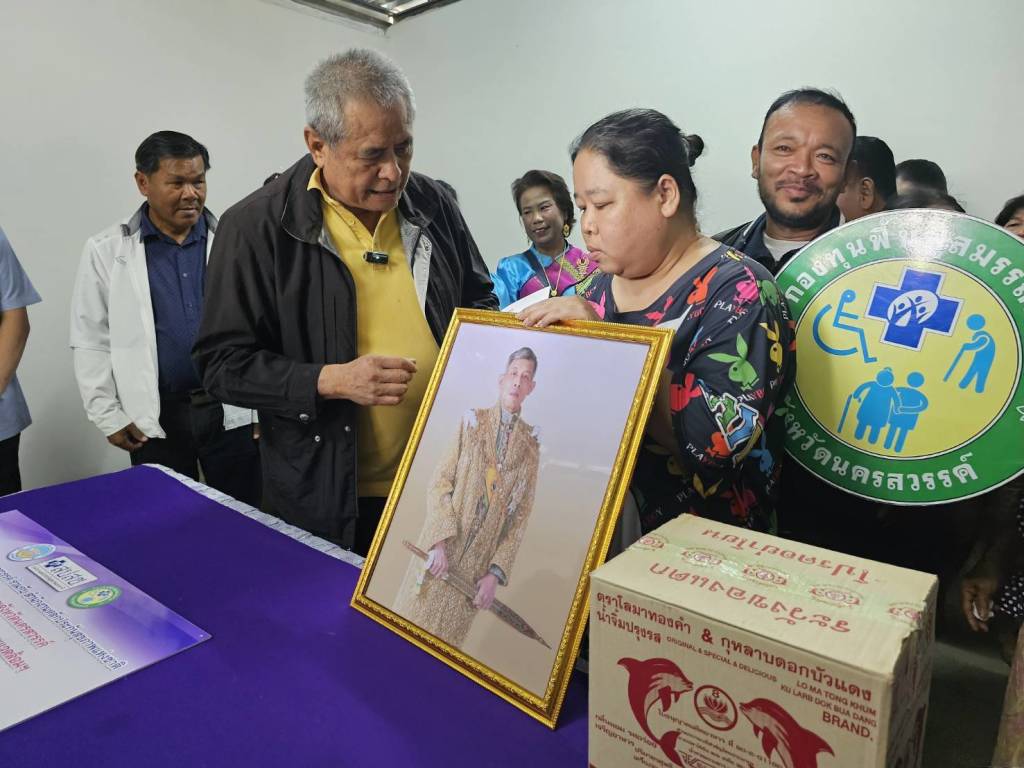พร้อมกันนี้ นายก อบจ.นครสวรรค์ ได้มอบปัจจัยดำรงชีพ น้ำปลาตราโลมาทองคำ & กุหลาบ ดอกบัวแดง (โรงงานน้ำปลาโค้วไฮ้หลี ร่วมให้การสนับสนุน) น้ำดื่ม เดอะ จี (โรงเรียนนครสวรรค์สอนเสริม ร่วมให้การสนับสนุน) และที่นอนยางพารา พร้อมให้กำลังใจในการสู้ชีวิตต่อไป