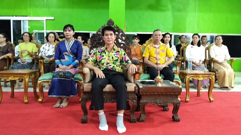 นายประเสริฐ ชัยกิจเด่นนภาลัย เป็นประธานจุดเทียนธูปบูชาพระรัตนตรัยในพิธีสวดเจริญพระพุทธมนต์เย็นในงานฉลององค์กฐินพระราชทาน