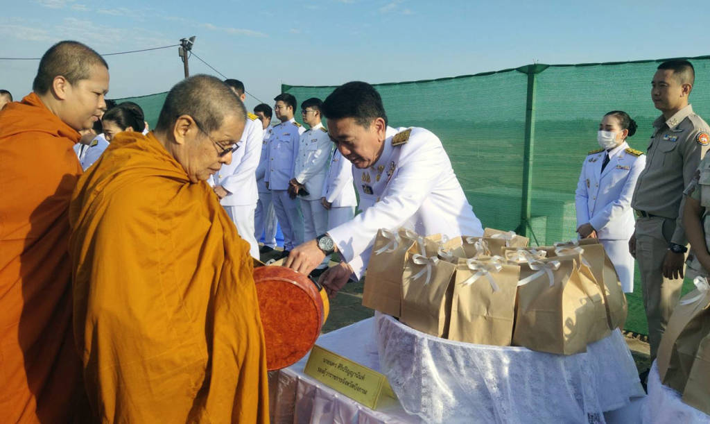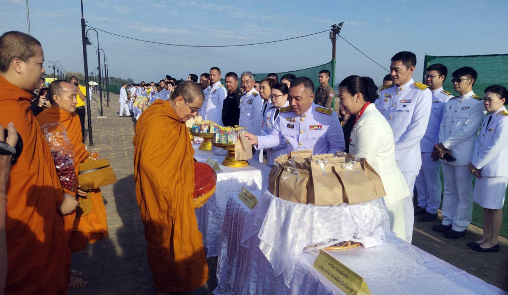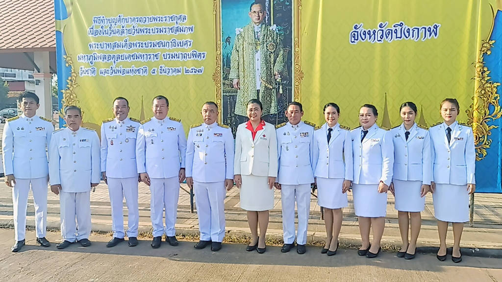 บึงกาฬ.... ผู้ว่านำทำบุญตักบาตร อบจ.วางพานพุ่ม 5 ธันวา 2567