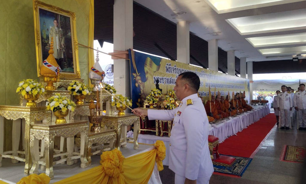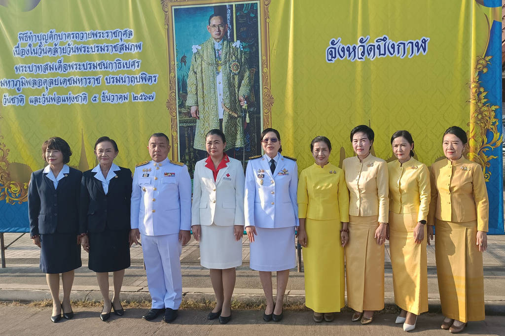 จากนั้นในเวลา 09.00 น.นางแว่นฟ้า ทองศรี นายก องค์การบริหารส่วนจังหวัดบึงกาฬ นายไตรภพ รำเพยพล และนางกันยา อนันตทัศน์ รองนายก อบจ. ได้นำข้าราชการส่วนท้องถิ่น พ่อค้า ประชาชนในเขตเทศบาลเมือง มีเทศบาลเมืองบึงกาฬ เทศบาลโคกก่อง เทศบาลไคสี เทศบาลโนนสว่าง ร่วมพิธีวางพานพุ่มดอกไม้ถวายราชสักการะ เบื้องหน้าพระบรมฉายาลักษณ์ พระบาทสมเด็จพระบรมชนกาธิเบศร มหาภูมิพลอดุลยเดชมหาราช บรมนาถบพิตร ณ เวทีเช่าคราวถนนข้าวเม่าริมโขง เพื่อน้อมรำลึกในพระมหากรุณาธิคุณ ที่ทรงมีต่อพสกนิกรชาวไทย ตลอดจนแสดงออกถึงความจงรักภักดี และการเทิดทูนสถาบันพระมหากษัตริย์ ซึ่งเป็นศูนย์รวมจิตใจของคนไทยทั้งชาติ และเป็นมิ่งขวัญของปวงชนชาวไทยตลอดมา.