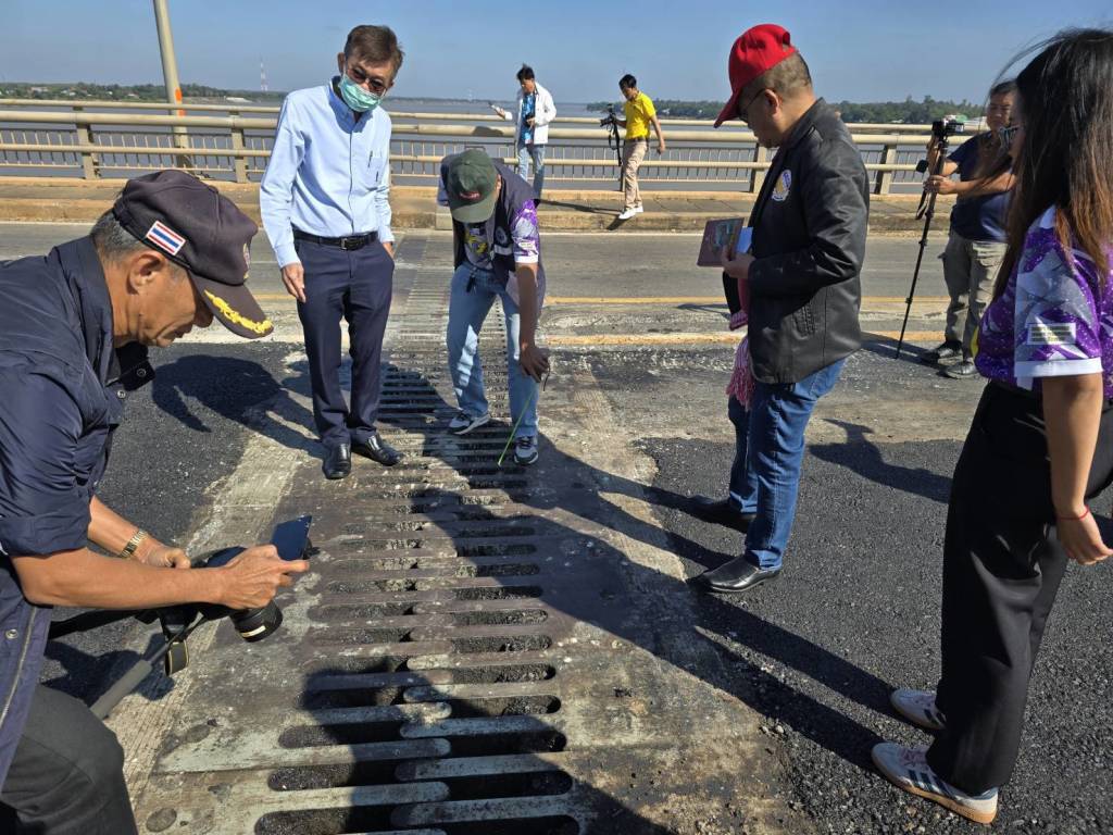 มุกดาหาร ผอ.ทางหลวง นำสื่อขึ้นสะพาน 2 พิสูจน์ยังแข็งแรง แจงรอยต่อห่างมากเพราะหน้าหนาวบวกรถเยอะ