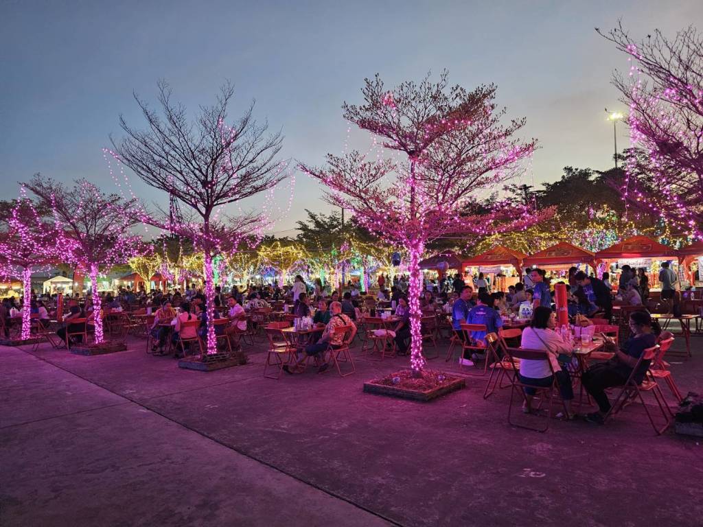 ในด้านของร้านค้า มียอดจำนวนร้านค้ากว่า 1,000 ร้านเข้ามาทำการจำหน่ายเครื่องดื่มอาหารเสื้อผ้า รถจักรยานยนต์ ขนมจีน ยำและยังมี Food Truck จอดจำหน่ายอาหารหลังอุโมงค์ไฟ โดยประชาชนที่เดินทางเข้ามาทางด้านหน้างานจะพบกับอุโมงค์ซึ่งประดับราวด้วยไฟอย่างสวยงามเป็นระยะทางยาวเกือบ 200 เมตรและภายในงานยังมีการประดับประดาตกแต่งตามต้นไม้ต่างๆด้วยไฟหลากสีกว่าล้านดวง ส่วนไฮไลท์ที่โดดเด่นของงาน คือการจัดแสดงบอลลูนและมีบอลลูนยักษ์ให้ประชาชนลงชื่อเข้าต่อคิวเพื่อขึ้นบอลลูนยักษ์ภายในงานอีกด้วย ขณะนี้มีประชาชน ไปลงชื่อและเข้าแถวรออยู่บริเวณลานบอลลูนจำนวนมาก นับว่างานนี้เป็นงานใหญ่อีกงานหนึ่งของเมืองนครสวรรค์ ที่องค์การบริหารส่วนจังหวัดนครสวรรค์จัดบริการเพื่อประชาชน เพื่อเป็นการกระตุ้นการท่องเที่ยว กระตุ้นเศรษฐกิจ ส่งเสริมให้ประชาชนมีงานทำ มีรายได้ มีการหมุนเวียนของเงินตราในการจับจ่ายซื้อขายสินค้า สิ่งของ เสื้อผ้า อาหาร