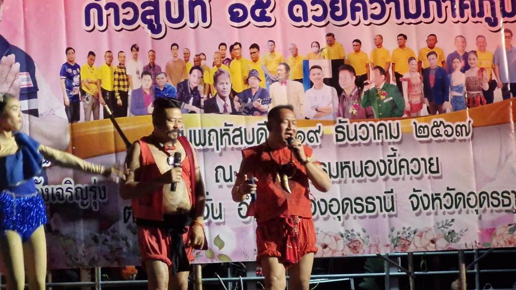 วันที่ 19 ธ.ค.2567 เวลา 18.00 น ที่ลานสนามกีฬาหนองขี้ควาย องค์การบริหารส่วนตำบลบ้านจั่น อำเภอเมือง จังหวัดอุดรธานี นายณฐพล วิถี รองผู้ว่าราชการจังหวัดอุดรธานี ได้เดินทางมาเป็นประธานกล่าวเปิดงานฉลอง หนังสือพิมพ์ คู่แผ่นดิน ครบรอบ 14 ปี ก้าวสู่ปีที่ 15 ด้วยความภาคภูมิ โดยการต้อนรับของ บก.ต้น คู่แผ่นดิน หรือนายกิตติศักดิ์ ศิริคลังเจริญรุ่ง บรรณาธิการ มีสื่อมวลชนสังกัดสำนักข่าวหนังสือพิมพ์คู่แผ่นดิน จากทั่วภูมิภาคมาร่วมงาน พร้อมรวมศิลปินนักร้อง นักแสดงชั้นแนวหน้าหลายคนมาร่วมงาน อาทิเช่น เกษม คมสันต์, เหลือง บริสุทธิ์,ชาติ มหาชน,ศรีหลอด เชิญยิ้ม, ชัชชัย ชัชวาลย์ ,ถาวร สายทองคำ ,พรเทพ เพชรซำสูง , หมอลำคณะ หมอลำลำดวนปากเข็ด, ธิดาโอ่ง ราชบุรี,ดร.บุญมา พันดวง และบ่าวข้าวก่ำ ,บ่าวต๋อย จากสมาคมโฆษกศิลปินไทยอีสาน กับพ่อค้าแม่ค้าและประชาชน ที่ให้ความสนใจเข้ามาร่วมงาน ชมกิจกรรมและการแสดง เป็นจำนวนมาก
