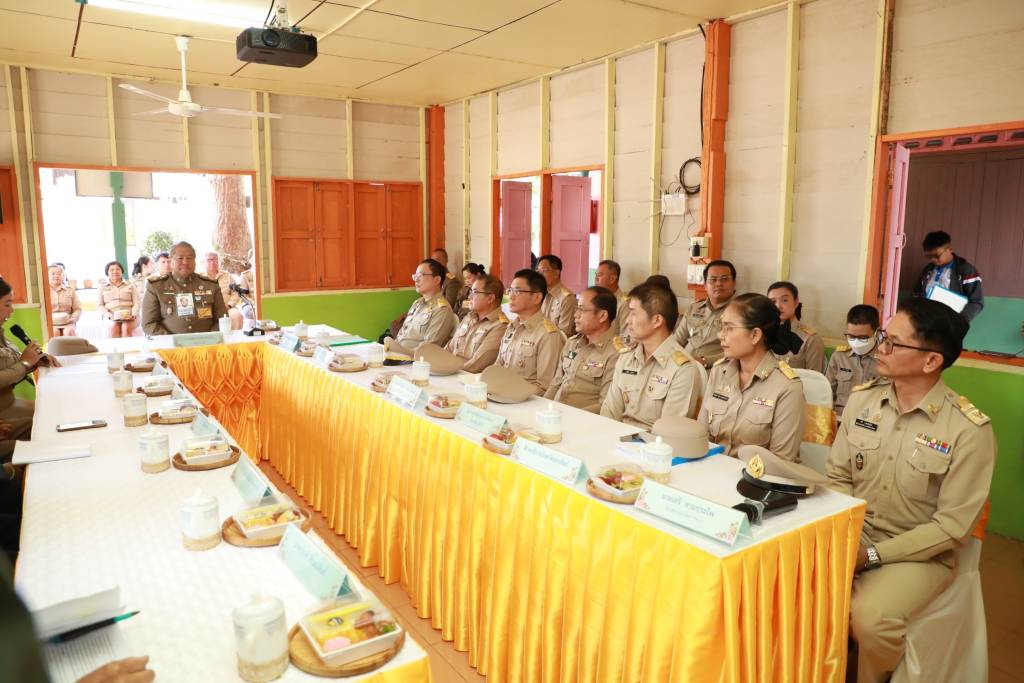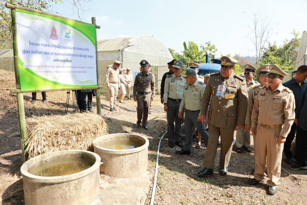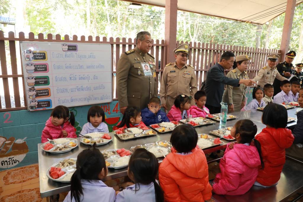 จากนั้น องคมนตรีและคณะฯ ติดตามการดำเนินงานโครงการเกษตรเพื่ออาหารกลางวัน โอกาสนี้ นางสุพร ตรีนรินทร์ เลขาธิการ กปร. บรรยายสรุปเกี่ยวกับพระราชดำริและความเป็นมาของโครงการฯ ซึ่งพระบาทสมเด็จพระเจ้าอยู่หัว ทรงพระกรุณาโปรดเกล้าฯ ให้สำนักงาน กปร. พิจารณาให้ความอนุเคราะห์แก่โรงเรียนบ้านเด่นชาติ ตำบลบ่อเบี้ย อำเภอบ้านโคก จังหวัดอุตรดิตถ์ ที่ได้ขอพระราชทานเรื่องโรงเลี้ยงไก่ไข่ กิจกรรมเพาะเลี้ยงเห็ดนางฟ้า เรื่องเมล็ดพันธุ์ผัก และโครงการเกษตรเพื่ออาหารกลางวัน ต่อมา สำนักงาน กปร. ประสานหน่วยงานที่เกี่ยวข้อง โดยกำหนดแผนการดำเนินงานเป็น 2 ระยะคือ แผนระยะเร่งด่วน โดยประสานศูนย์ศึกษาการพัฒนาห้วยฮ่องไคร้อันเนื่องมาจากพระราชดำริ จังหวัดเชียงใหม่ ในการสนับสนุนกิจกรรมโรงเลี้ยงไก่ไข่ กิจกรรมเพาะเห็ดนางฟ้า มอบเมล็ดพันธุ์ และกิจกรรมเกษตรเพื่ออาหารกลางวัน ตามที่ขอพระราชทานพระมหากรุณา รวมทั้งถ่ายทอดองค์ความรู้ ส่งเสริมพัฒนาเพิ่มทักษะที่ถูกต้องและเหมาะสมในเรื่องการเพาะปลูกพืช การประมง และปศุสัตว์ ในกิจกรรมที่โรงเรียนดำเนินการอยู่แล้วเดิม โดยการฝึกอบรม สาธิต และฝึกปฏิบัติให้แก่ครู บุคลากรทางการศึกษา และนักเรียนโรงเรียนบ้านเด่นชาติ รวมทั้งยังส่งเสริมให้ราษฎรและผู้ปกครองบ้านเด่นชาติที่สนใจเข้าร่วมฝึก อบรม พร้อมกับสนับสนุนปัจจัยการผลิตที่เกี่ยวข้องกับกิจกรรมของโรงเรียน เพื่อให้ผู้ปกครองและนักเรียนเข้ามามีส่วนร่วมและเรียนรู้ร่วมกัน