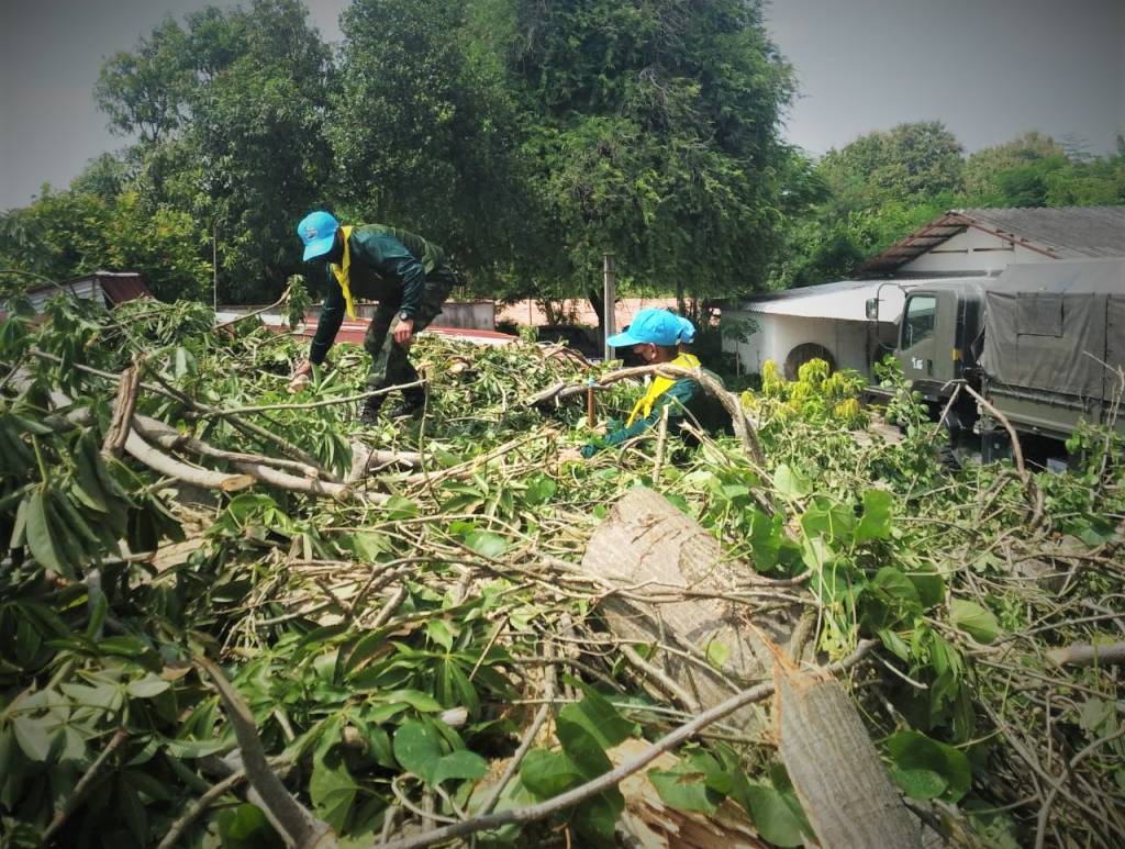 ทหารขอนแก่น นำกำลังพลจิตอาสา เข้าช่วยเหลือประชาชนที่ได้รับผบกระทบจากวาตภัย ทำให้ต้นไม้หักโค่นล้มทับบ้านเสียหาย