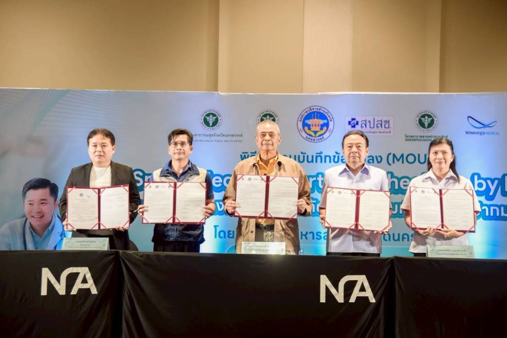 โดยก่อนเข้าสู่พิธีเปิดงาน นายก อบจ.ได้พูดถึง ที่มาของการจัดโครงการในครั้งนี้ จากนั้นเข้าสู่พิธีลงนาม MOU บันทึกข้อตกลงว่าด้วยความร่วมมือด้านการตรวจคัดกรองมะเร็งปากมดลูกสตรี ระหว่าง องค์การบริหารส่วนจังหวัดนครสวรรค์ กับ นายแพทย์จักราวุธ จุฑาสงฆ์ นายแพทย์สาธารณสุขจังหวัดนครสวรรค์ นายแพทย์เอกรินทร์ อุ่นอบ ผอ.สำนักงานหลักประกันสุขภาพแห่งชาติ (สปสช.) เขต 3 นครสวรรค์ แพทย์หญิงศิรินนา แสงอรุณ ผอ.ศูนย์อนามัยที่ 3 และนายธนกร วิทยะสิรินันท์ กรรมการบริษัทวินเนอร์ยี่ เมดิคอล จำกัด (มหาชน) พร้อมร่วมพูดคุยบทบาทความร่วมมือในการดูแลสุขภาพ สุขภาวะประชาชนในจังหวัดนครสวรรค์