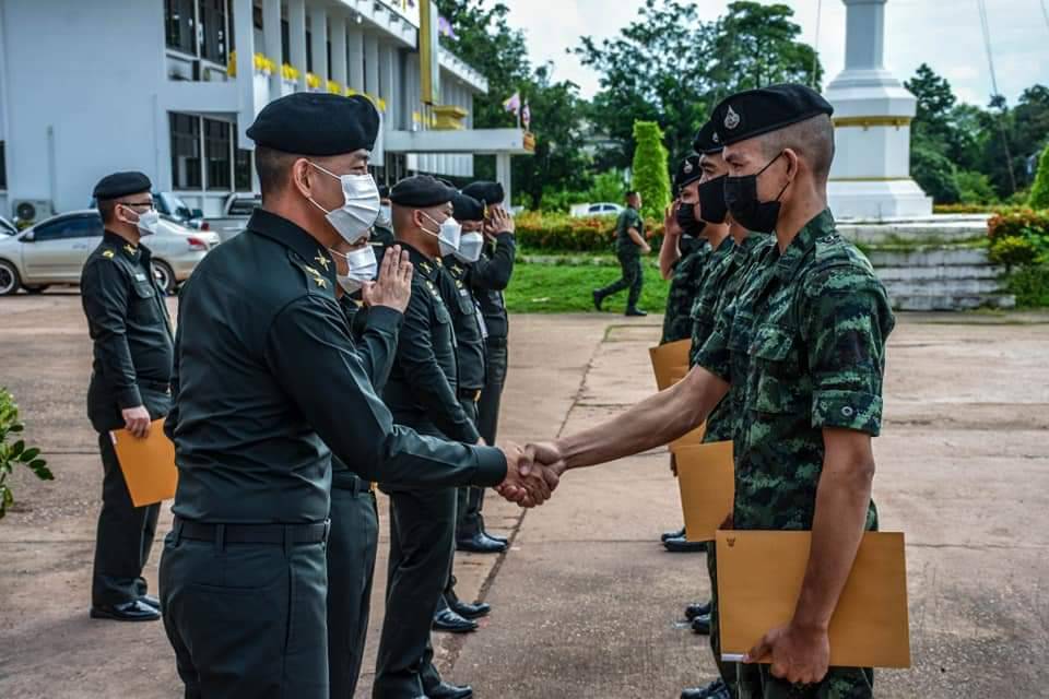 นครพนม - ผบ.ร.3 พัน.3 มอบใบประกาศเกียรติคุณ “ทหารเกณฑ์ปลดประจำการ” เลี้ยงอาหารมื้อพิเศษ ตรวจคัดกรองทหารทุกนายก่อนสู่อ้อมกอดครอบครัว